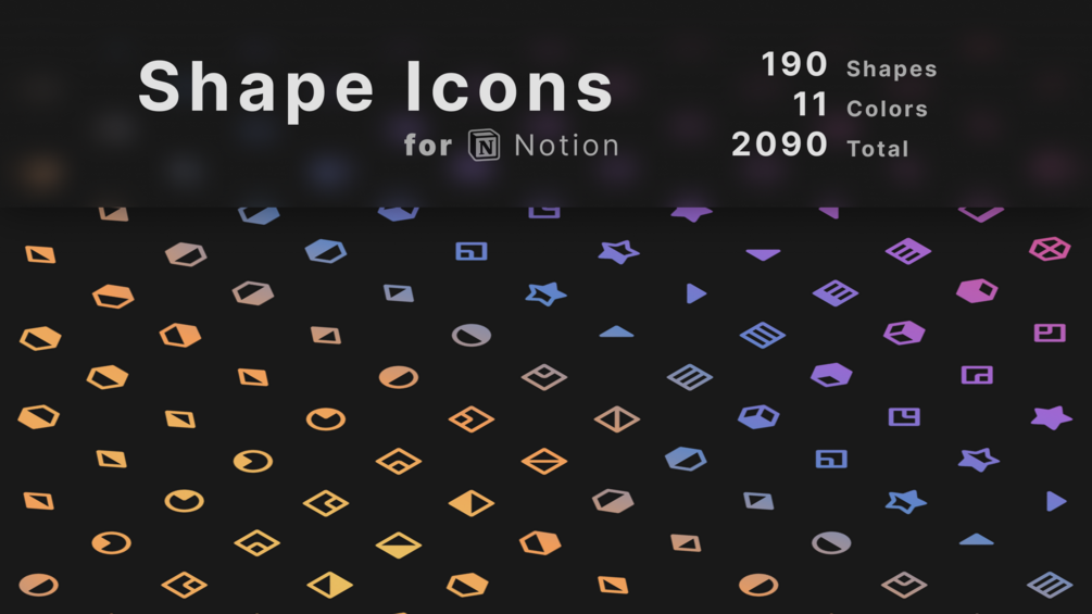 A collection of 2000+ shape icons for Notion. All 11 colors perfectly match Notions color palette. Great for a minimal aesthetic.